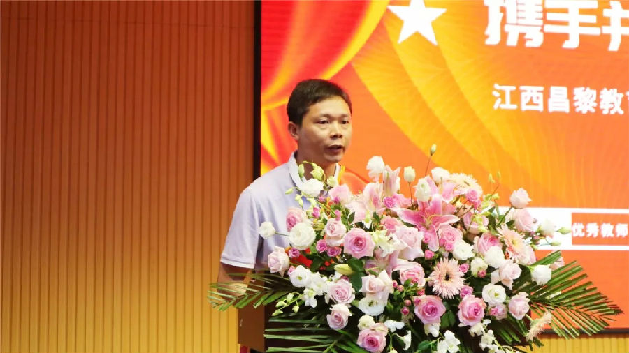 獎(jiǎng)狀在手,榮譽(yù)加身,熱烈的掌聲和此起彼伏的拍照聲在此刻是對(duì)老師們過(guò)去一年辛勤工作的最好褒獎(jiǎng)。    宜春昌黎實(shí)驗(yàn)學(xué)校優(yōu)秀教師代表何斌發(fā)言